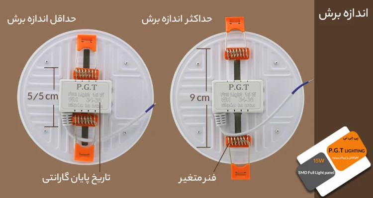 معرفی پنل فول لایت توکار سایز شو PGT گرد 15 وات